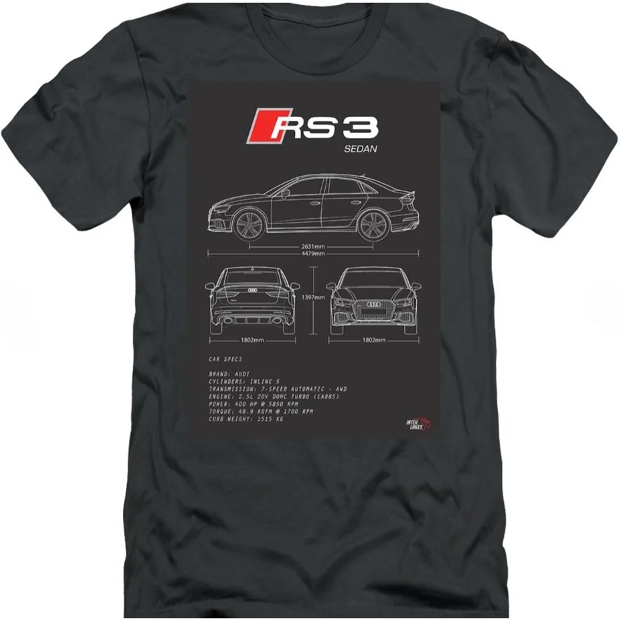 Audi men's t-shirt rs3 engineering printing mechanical style car enthusiast car theme casual cotton summer